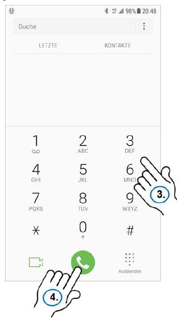 3. Geben Sie nun auf dem Ziffernblock die Telefonnummer